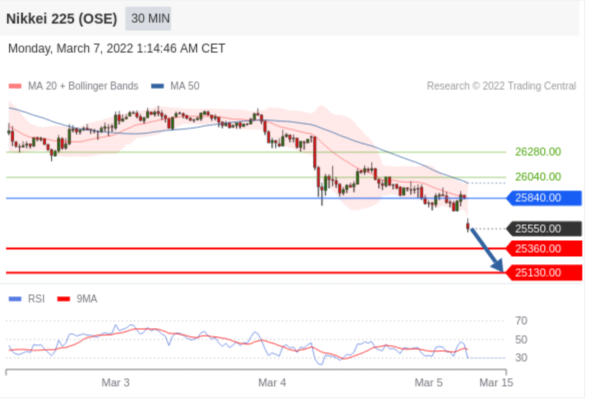 在 25840.00 之下,看跌,目标价位为 25360.00 ,然后为 25130.00 。