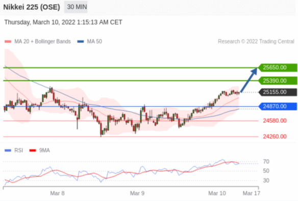 交易策略: 在 24870.00 之上,看涨,目标价位为 25390.00 ,然后为 25650.00 。