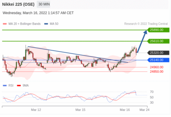 交易策略: 在 25140.00 之上,看涨,目标价位为 25610.00 ,然后为 25890.00 。