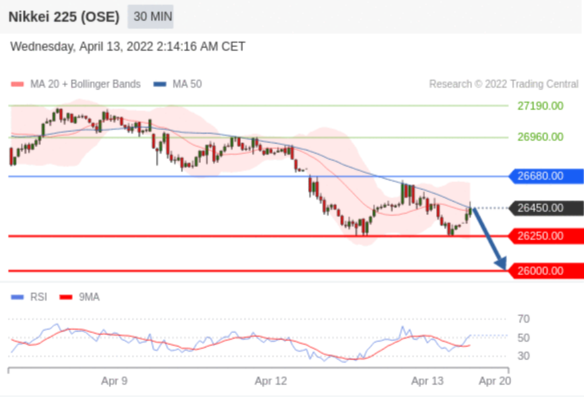 交易策略: 在 26680.00 之下,看跌,目标价位为 26250.00 ,然后为 26000.00 。