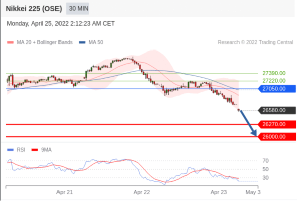 在 27050.00 之下,看跌,目标价位为 26270.00 ,然后为 26000.00 。
