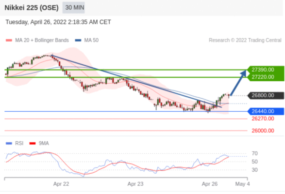 交易策略: 在 26440.00 之上,看涨,目标价位为 27220.00 ,然后为 27390.00 。