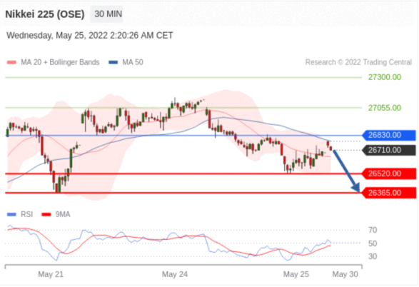 交易策略: 在 26830.00 之下,看跌,目标价位为 26520.00 ,然后为 26365.00 。