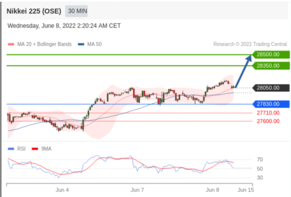 交易策略: 在 27830.00 之上,看涨,目标价位为 28350.00 ,然后为 28500.00 。