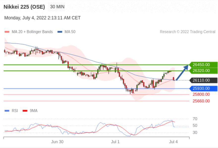 交易策略: 在 25930.00 之上,看涨,目标价位为 26320.00 ,然后为 26450.00 。