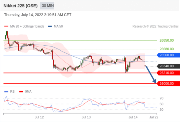 交易策略: 在 26560.00 之下,看跌,目标价位为 26210.00 ,然后为 26000.00 。