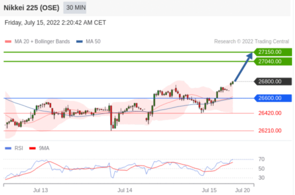 在 26600.00 之上,看涨,目标价位为 27040.00 ,然后为 27150.00 。