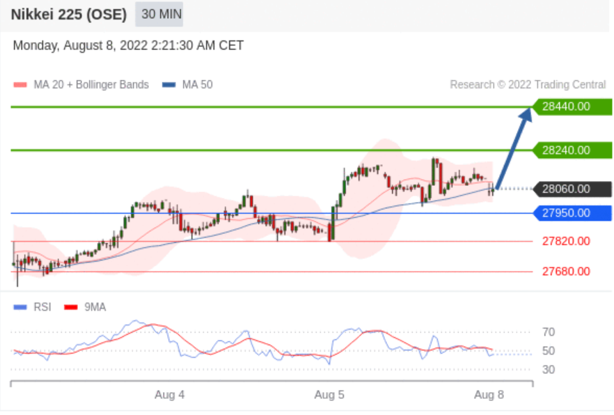 交易策略: 在 27950.00 之上,看涨,目标价位为 28240.00 ,然后为 28440.00 。