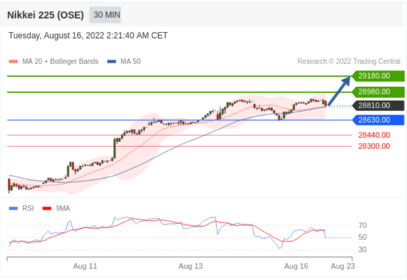 交易策略: 在 28630.00 之上,看涨,目标价位为 28980.00 ,然后为 29180.00 。