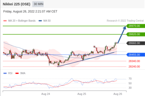 交易策略: 在 28455.00 之上,看涨,目标价位为 28820.00 ,然后为 28970.00 。