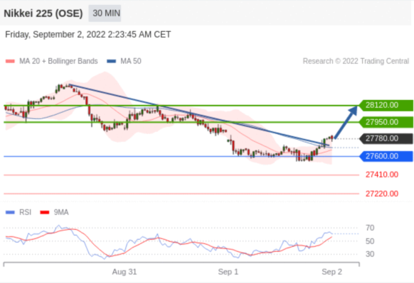 交易策略: 在 27600.00 之上,看涨,目标价位为 27950.00 ,然后为 28120.00 。