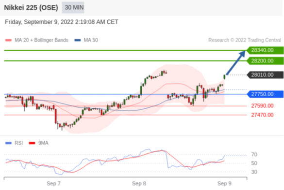 日经225股指期货 (OSE) (U2) 当日内交易策略: 在 27750.00 之上 目标价位为 28200.00(20220909)