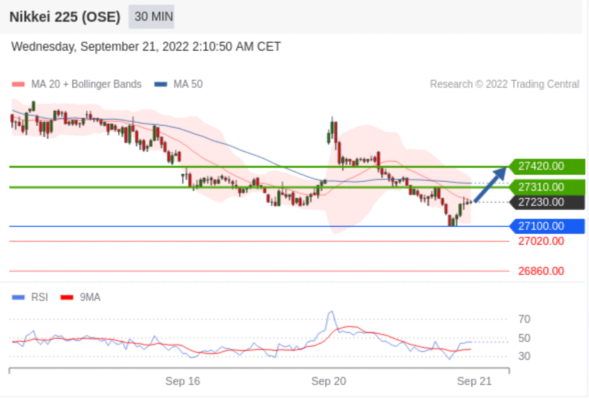 日经225股指期货 (OSE) (U2) 当日内交易策略: 在 27100.00 之上 目标价位为 27310.00 (20220921)