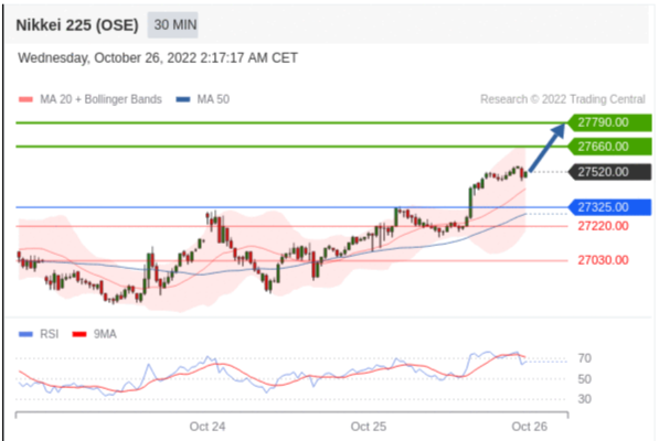 交易策略: 在 27325.00 之上,看涨,目标价位为 27660.00 ,然后为 27790.00 。