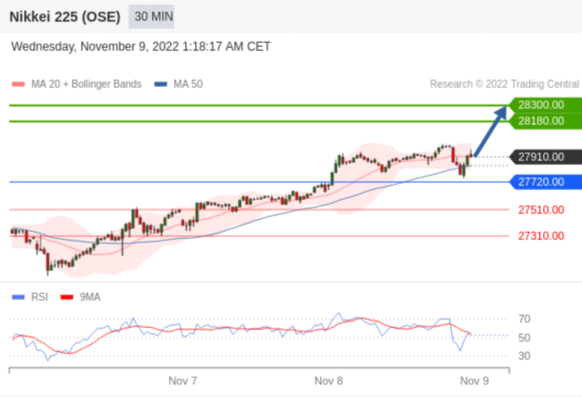 交易策略: 在 27720.00 之上,看涨,目标价位为 28180.00 ,然后为 28300.00 。
