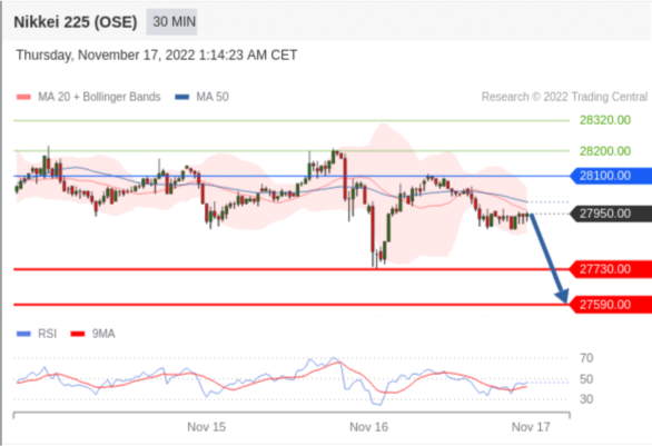 交易策略: 在 28100.00 之下,看跌,目标价位为 27730.00 ,然后为 27590.00 。