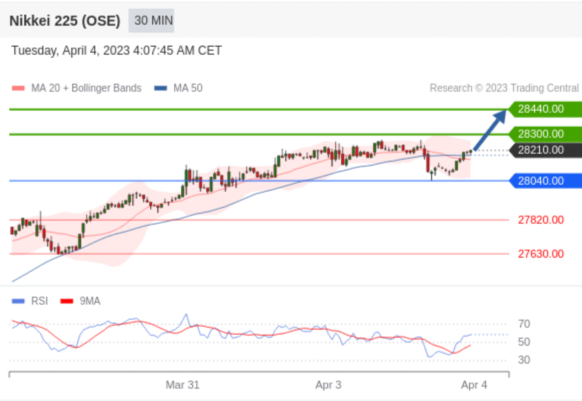 交易策略: 在 28040.00 之上,看涨,目标价位为 28300.00 ,然后为 28440.00 。
