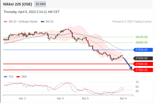 交易策略: 在 27830.00 之下,看跌,目标价位为 27500.00 ,然后为 27360.00 。