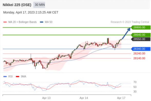 交易策略: 在 28340.00 之上,看涨,目标价位为 28640.00 ,然后为 28800.00 。