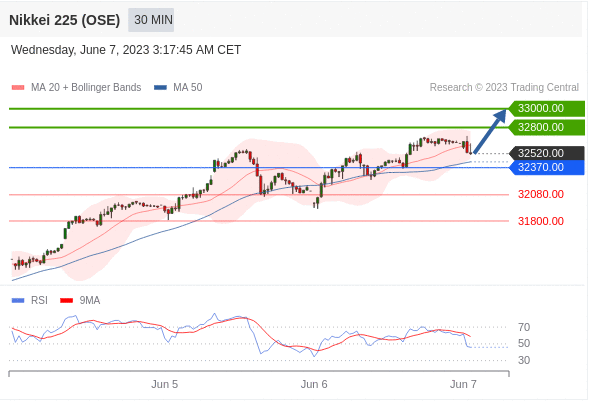 交易策略: 在 32370.00 之上,看涨,目标价位为 32800.00 ,然后为 33000.00 。