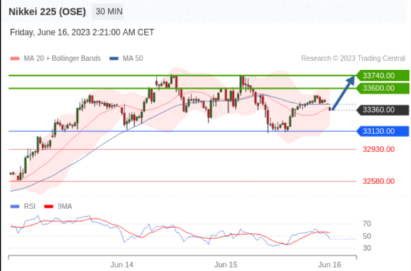 交易策略: 在 33130.00 之上,看涨,目标价位为 33600.00 ,然后为 33740.00 。