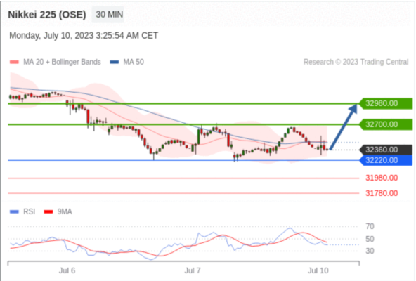 交易策略: 在 32220.00 之上,看涨,目标价位为 32700.00 ,然后为 32980.00 。