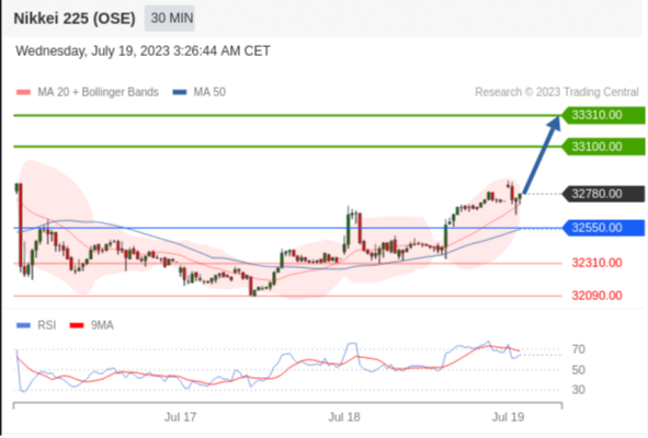 交易策略: 在 32550.00 之上,看涨,目标价位为 33100.00 ,然后为 33310.00 。
