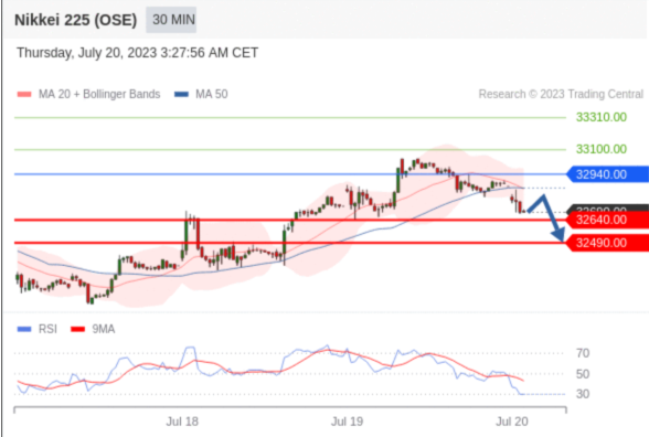 交易策略: 在 32940.00 之下,看跌,目标价位为 32640.00 ,然后为 32490.00 。