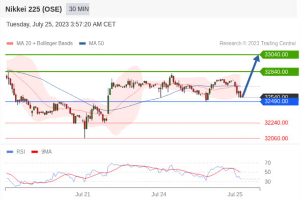 交易策略: 在 32490.00 之上,看涨,目标价位为 32840.00 ,然后为 33040.00 。