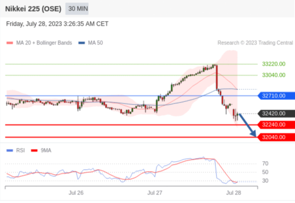 交易策略: 在 32710.00 之下,看跌,目标价位为 32240.00 ,然后为 32040.00 。