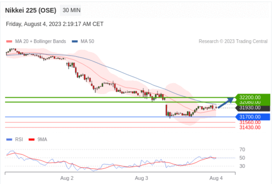 交易策略: 在 31700.00 之上,看涨,目标价位为 32080.00 ,然后为 32200.00 。