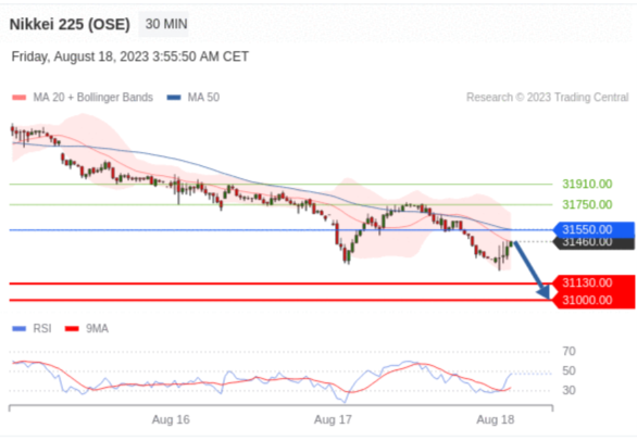 在 31550.00 之下,看跌,目标价位为 31130.00 ,然后为 31000.00 。