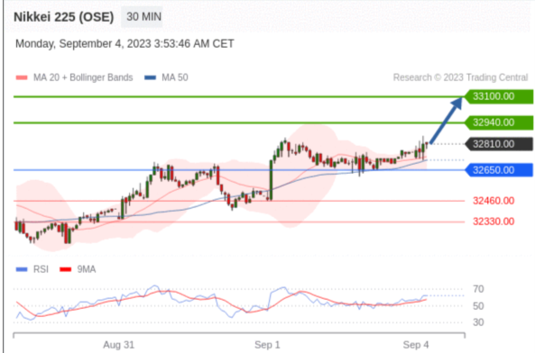 交易策略: 在 32650.00 之上,看涨,目标价位为 32940.00 ,然后为 33100.00 。