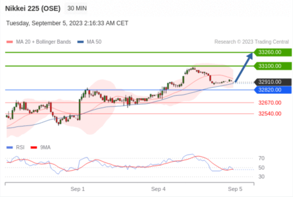 在 32820.00 之上,看涨,目标价位为 33100.00 ,然后为 33260.00 。