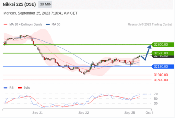 交易策略: 在 32180.00 之上,看涨,目标价位为 32560.00 ,然后为 32800.00 。