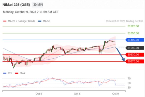 在 31400.00 之下,看跌,目标价位为 30830.00 ,然后为 30570.00 。