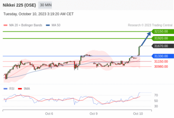 交易策略: 在 31330.00 之上,看涨,目标价位为 31920.00 ,然后为 32150.00 。