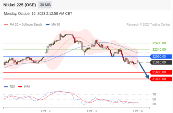 交易策略: 在 32060.00 之下,看跌,目标价位为 31660.00 ,然后为 31490.00 。