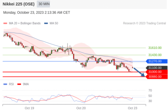 交易策略: 在 31270.00 之下,看跌,目标价位为 31000.00 ,然后为 30880.00 。
