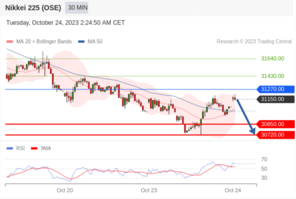 交易策略: 在 31270.00 之下,看跌,目标价位为 30850.00 ,然后为 30720.00 。