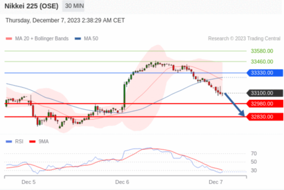 在 33330.00 之下,看跌,目标价位为 32980.00 ,然后为 32830.00 。