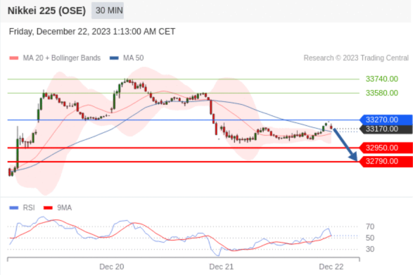 交易策略: 在 33270.00 之下,看跌,目标价位为 32950.00 ,然后为 32790.00 。
