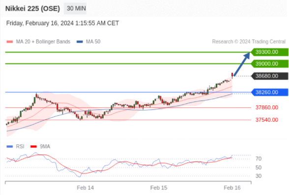 在 38260.00 之上,看涨,目标价位为 39000.00 ,然后为 39300.00 。