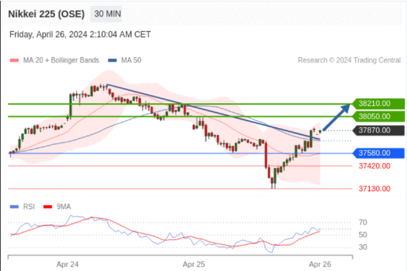 交易策略: 在 37580.00 之上,看涨,目标价位为 38050.00 ,然后为 38210.00 。