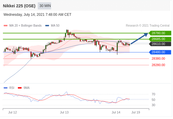 在28480.00之上,看涨,目标价位为28685.00,然后为28780.00。 转折点:28480.00 交易策略:在28480.00之上,看涨,目标价位为28685.00,然后为28780.00。 备选策略:在28480.00下,看空,目标价位定在28380.00,然后为28280.00。 技术点评:28480.00附近形成了一个支撑的底部,将带来走势短期内的稳定。 阻力位: 28840.00