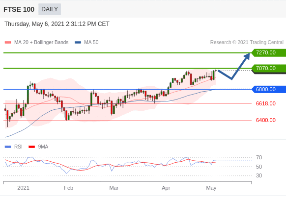 FT100短线:谨慎操作。 在6800.00之上,看涨,目标价位为7070.00,然后为7270.00。 转折点:6800.00 交易策略:在6800.00之上,看涨,目标价位为7070.00,然后为7270.00。 备选策略:在6800.00下,看空,目标价位定在6618.00,然后为6400.00。 技术点评:投资者应保持谨慎操作,由于这些支撑或阻力位可能引发套
