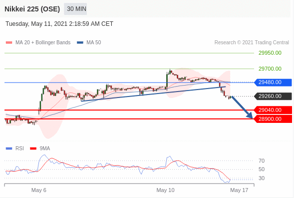 日经225股指期货(O)(1)当日内:目标位为28200.00。 在29040.00之下,看跌,目标价位为28400.00,然后为28200.00。 转折点:29040.00 交易策略:在29040.00之下,看跌,目标价位为28400.00,然后为28200.00。 备选策略:在29040.00上,看涨,目标价位定在29190.00,然后为29330.00。 技术点评:RI技术指标呈现