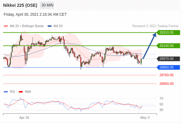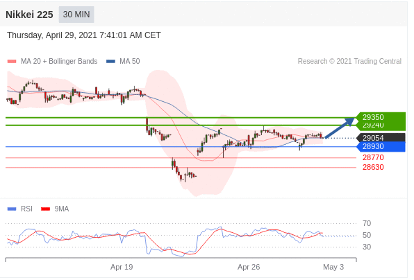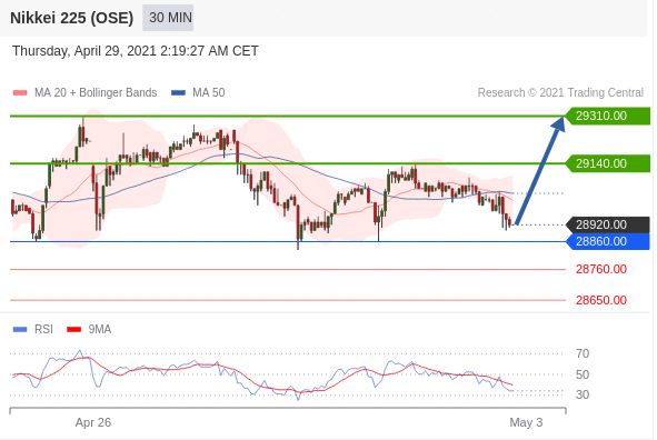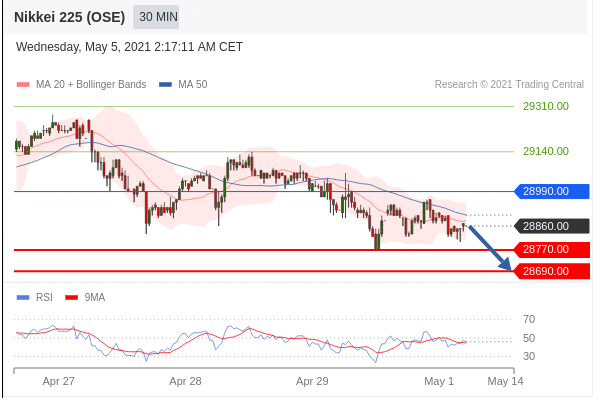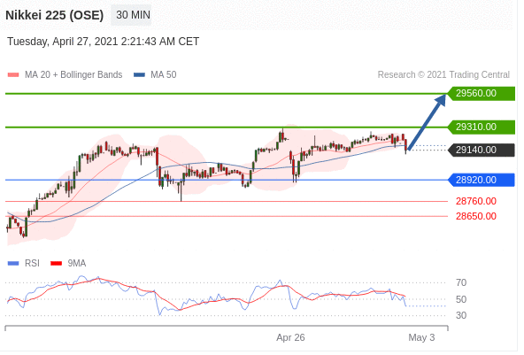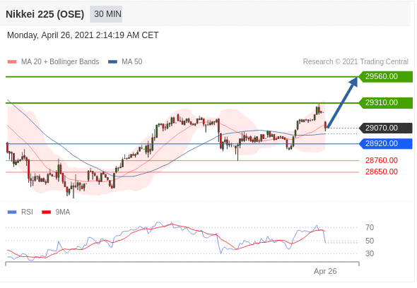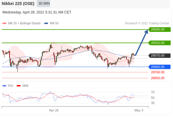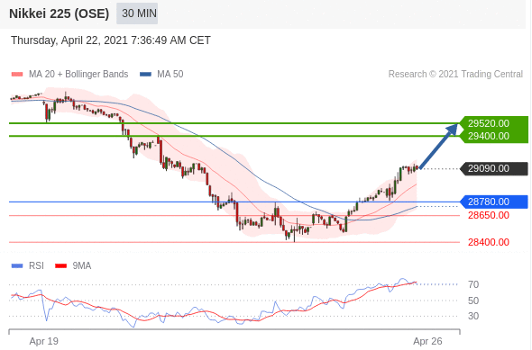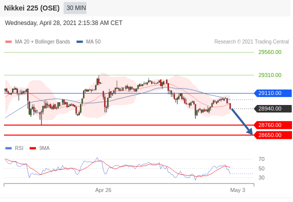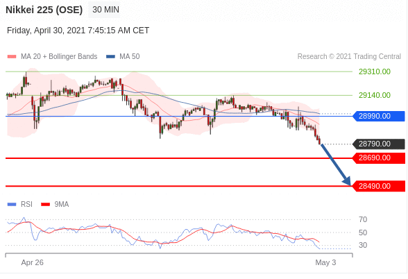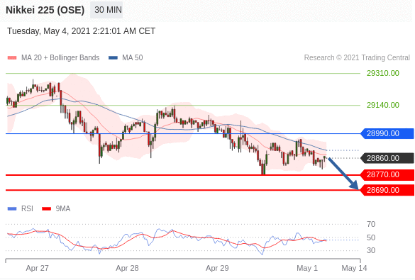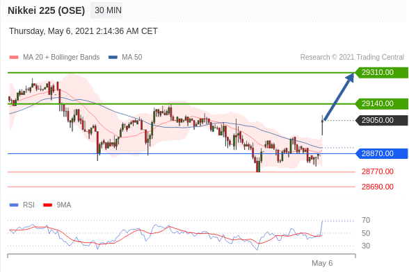 印度央行警告疫情可能破坏印度本土供应链。韩国第一季度GD超预期叠加解除卖空禁令,支撑KOI指数基本收平。同时泰国多地宣布宵禁,但股市仍然小幅上涨。 日经225指数跌0.46%,收于28991.89点。医药、化工、房地产跌幅居前,海运、证券、银行板块涨幅居前。 韩国KOI指数跌0.07%,收于3215.42点。分销、医药、汽车零部件
