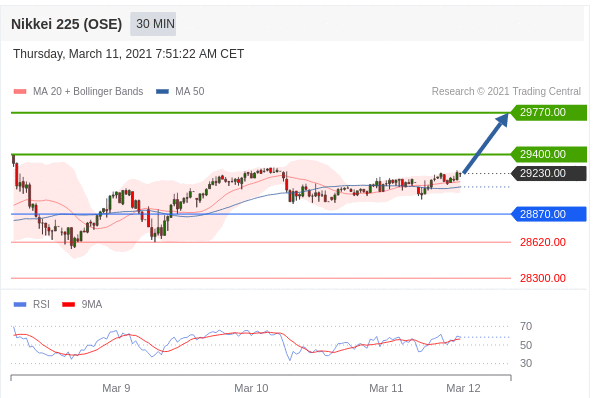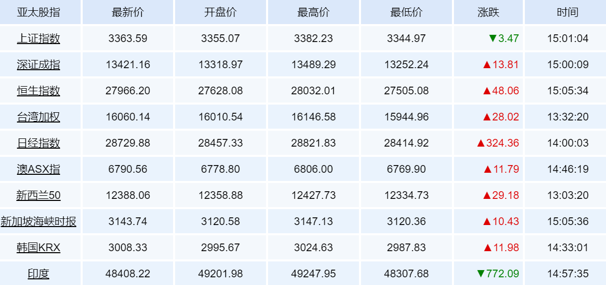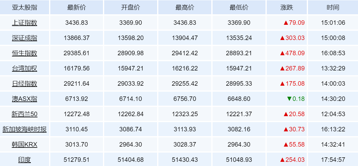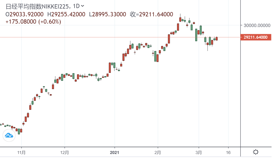 周四,亚太股市多数上涨,因隔夜公布的美国通胀数据疲弱,削弱了对美债收益率以及美联储提前收紧货币政策的担忧。韩国股市大涨约1.9%,无惧韩国央行对通货膨胀的上升速度可能超过预期的警告;日本股市也小幅上涨,周期股表现良好;受累于金融股,澳洲股市基本收平。 日经225指数涨0.6%,收于29211.64点。海运、有色