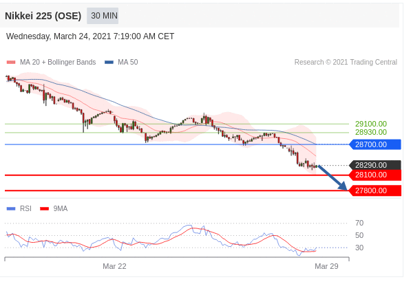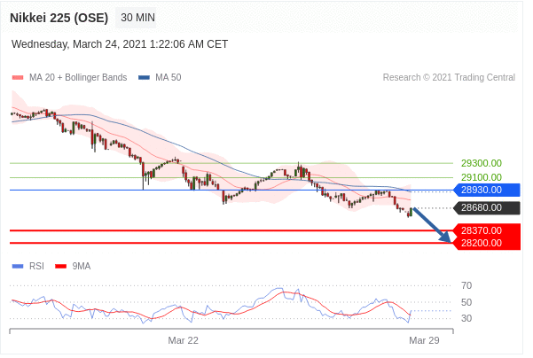 周三亚市早盘,亚洲股市下跌,原因是地缘政治风险,同时美联储决议前,市场维持平静。因此,CI亚洲除日本指数下跌0.37%,日本日经225指数下跌0.23%,跌至29,853。 首先是中国,美国并不乐见中国干预地区政治,并准备采取措施,而本周中美会谈将成为关键。另外,日本对美国牛肉进口征收进一步关税,朝鲜可能展开新的导
